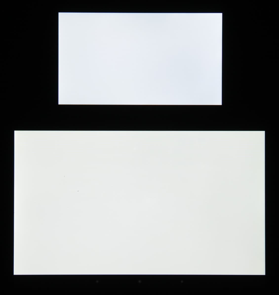 Экран имеет хорошие углы обзора без значительного сдвига цветов даже при больших отклонениях взгляда от перпендикуляра к экрану и без инвертирования оттенков. Для сравнения приведем фотографии, на которых на экраны BQ Aquaris E4.5 и Nexus 7 выведены одинаковые изображения, при этом яркость экранов изначально установлена примерно на 200 кд/м², а цветовой баланс на фотоаппарате принудительно переключен на 6500 К. Перпендикулярно к экранам белое поле: