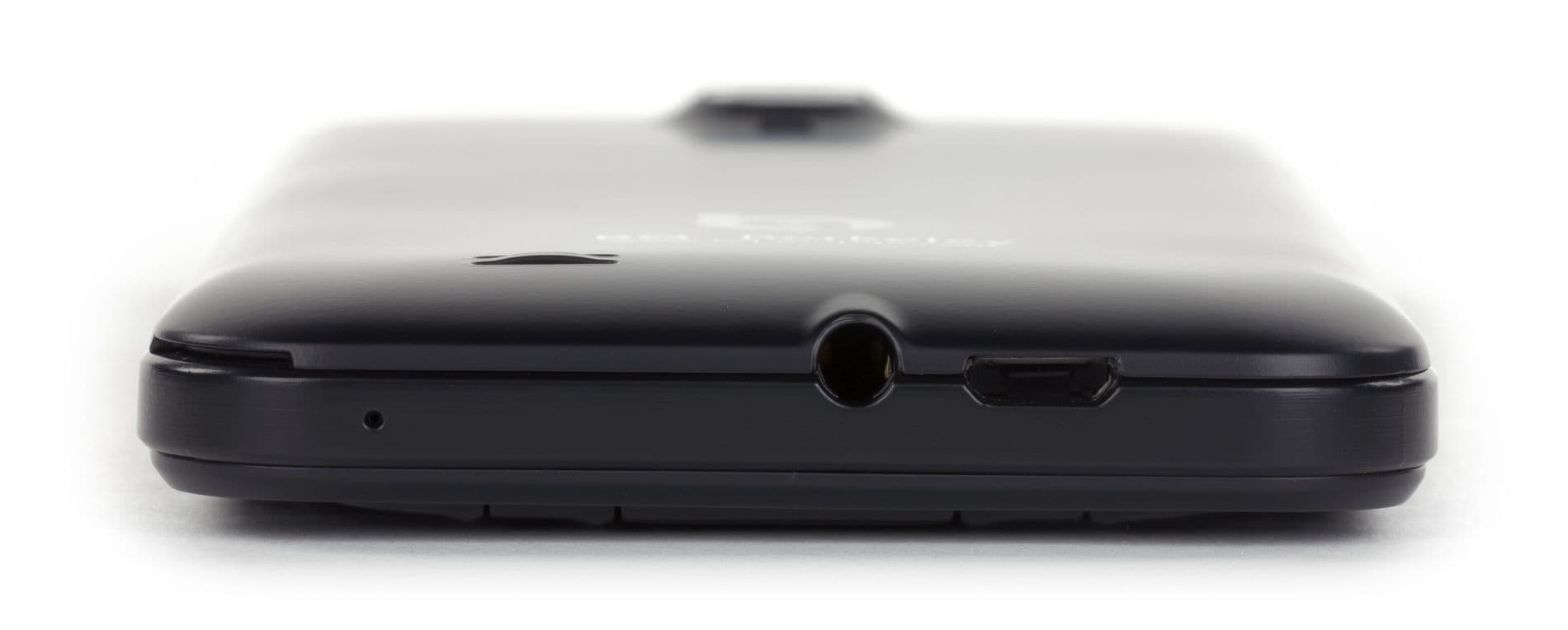 Никакими заглушками и крышками разъемы смартфона не прикрыты, потому что аппарат не обеспечен защитой от воды и пыли. Не нашлось на корпусе и крепления для ремешка. Смартфон, судя по описанию на фирменном сайте компании, предлагается только в одном цветовом варианте — полностью черном, как изображено у нас на снимках.