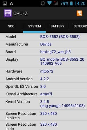 Аппаратная платформа BQ Berkeley строится на базе однокристальной системы (SoC) MediaTek MT6572. Данную платформу можно отнести к начальному уровню, центральный процессор здесь имеет 2 ядра Cortex-A7, работающих на частоте 1,0 ГГц. Обработкой графики занимается устаревший и слабый видеопроцессор Mali-400MP. Оперативной памяти в устройстве предусмотрено всего лишь 512 МБ, что на сегодняшний день уже откровенно мало. Со встроенной памятью дела у смартфона обстоят не лучше: из 4 ГБ внутренней памяти всего около 1 ГБ свободного места выделено под нужды пользователя и около 1,7 ГБ отведено для установки приложений. Правда, для расширения встроенной памяти в смартфон можно установить карту microSD, но установить на нее приложения система Android все равно не сможет. Режим подключения внешних устройств к порту USB (USB Host, USB OTG) аппарат, к сожалению, не поддерживает — считать информацию с подключенной к нему флэшки не получится.