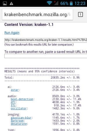 | Mozilla Kraken (мс, меньше — лучше) | 20835 | 16346 | 17289 | 15735 | 17302 |