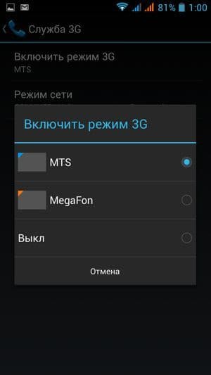 - Передача данных 3G