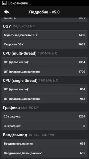 Что касается конкретных цифр в бенчмарках, то по результатам популярного AnTuTu производительность у аппаратной начинки героя обзора оказалась даже ниже чем у аналогов, работа которых строится на той же самой платформе. Правда, никто из них не обладает столь малым объемом оперативной памяти, и это вполне очевидно сказывается самым плачевным образом на общей производительности в тестах. По нашим прикидкам, в AnTuTu v4.x смартфон показал бы результат даже меньше 14К — хотя тот же Lenovo S660, например, демонстрировал там 17К и больше. Из-за малого количества выделенной памяти смартфон попросту отказался запускать большинство наших стандартных тестов, таких как 3DMark, EpicCitadel, Basemark X и др.