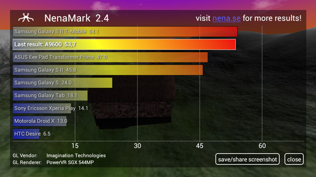 | Epic Citadel, High Performance (больше — лучше) | 58,0 fps | 57,4 fps | 59,9 fps | 55,5 fps | 57,2 fps | 18,8 fps | 58,2 fps |