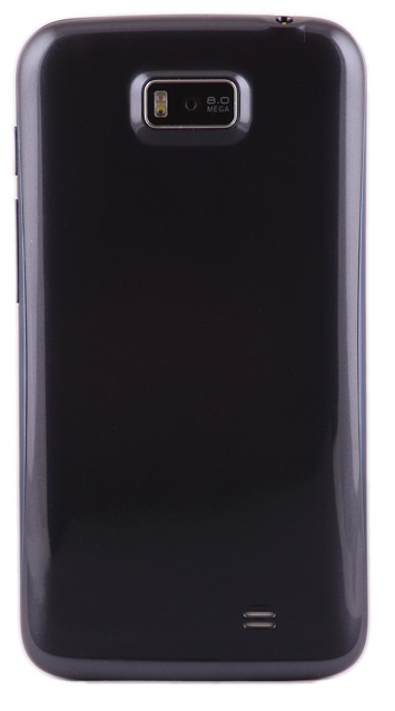 Корпус A9600 выполнен из пластика с глянцевым перламутровым темно-синим покрытием. Учитывая огромные размеры и вес смартфона, этот глянец является очевидным минусом: устройство так и норовит выскользнуть из рук, и о работе одной рукой речь вести сложно. Материалы корпуса выглядят довольно качественно, как и сборка — щели, люфт, скрипы отсутствуют, устройство ощущается монолитным. Полтора месяца активного использования смартфона нисколько не нарушили его товарный вид, что также может говорить о качестве корпуса. Разумеется, корпус относительно маркий, однако в нынешнее время, наверное, все уже привыкли к отпечаткам пальцев и на тачскринах, и на глянцевых элементах корпусов различных устройств. Для тех, кто с этим мириться не хочет, предлагается вместо глянцевой тыльной крышки установить комплектный футляр-обложку, выполненную, к чести производителя, в таком же цветовом оформлении, как и у самого смартфона, но имеющую рифленую поверхность.