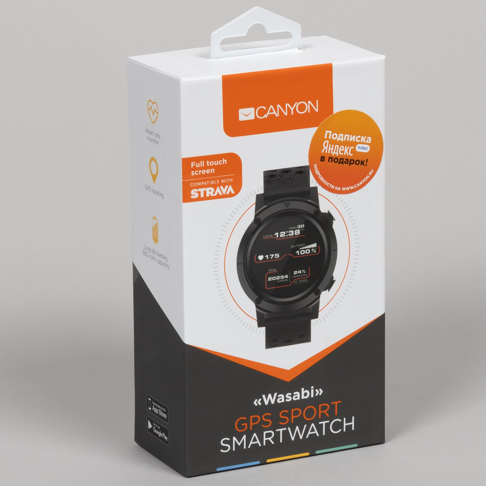 Canyon — отечественный бренд, изначально выпускавший мобильные и ПК-аксессуары, а с 2019 года занявшийся и носимыми устройствами. Из них наиболее интересна модель Wasabi, которая позиционируется как спортивные GPS-часы. В России это устройство можно купить даже дешевле 4 тысяч рублей, что делает его одним из самых дешевых среди аналогов. А если добавить к этому подарок в виде полугодовой подписки на Яндекс.Плюс, обычная цена которой — 1015 рублей, то получается совсем выгодно.