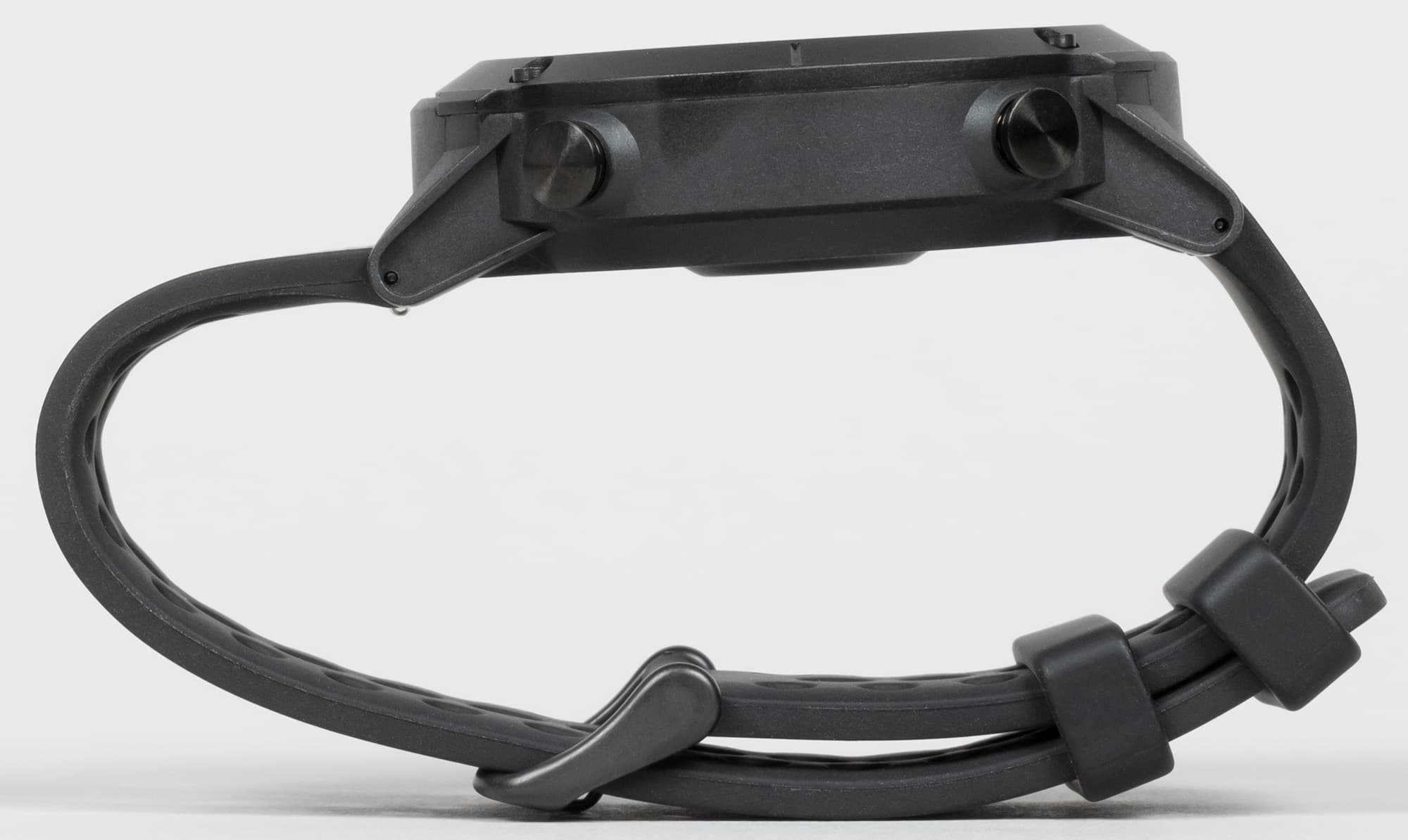 Основная часть корпуса и петли для ремешка, однако, выполнены из пластика, выкрашенного в тот же черный, что и металлический ободок.