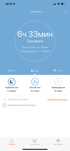 И последнее. Часы способны автоматически отслеживать сон, но делают это, увы, не всегда корректно. Например, на скриншоте ниже видно, что устройство распознало кратковременное пробуждение ранним утром, а вот продолжение сна уже не было зафиксировано, хотя автор даже не вставал с кровати и проспал затем еще около трех часов. Не по зубам устройству и дневной сон.