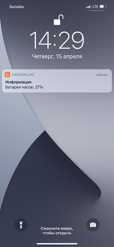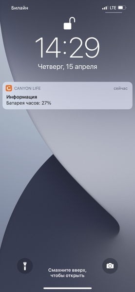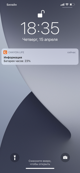 И еще одна странность — уже, скорее, забавная. Почему-то часы решили прислать уведомление, когда у них осталось 27% заряда, а потом — когда 23%.