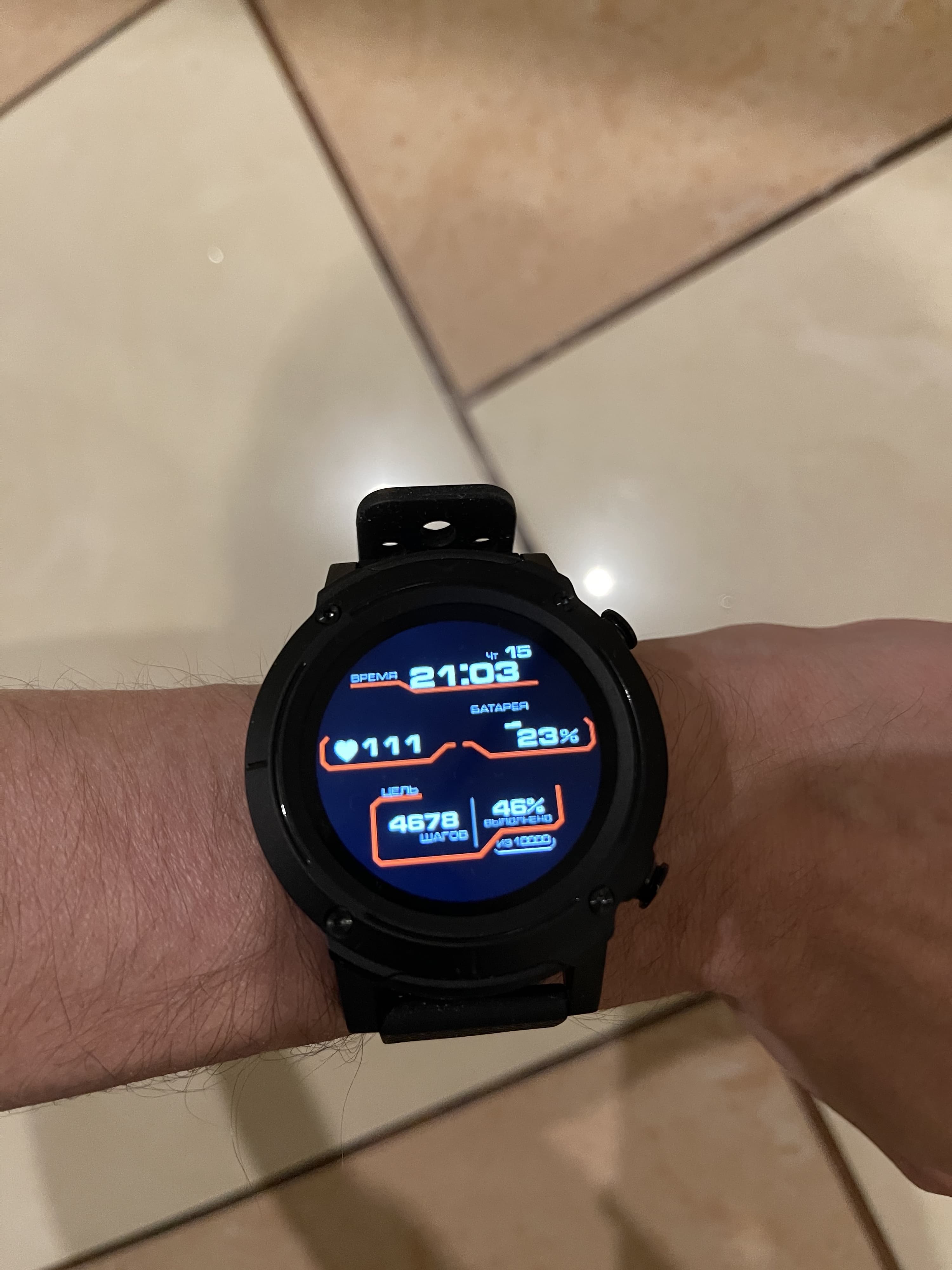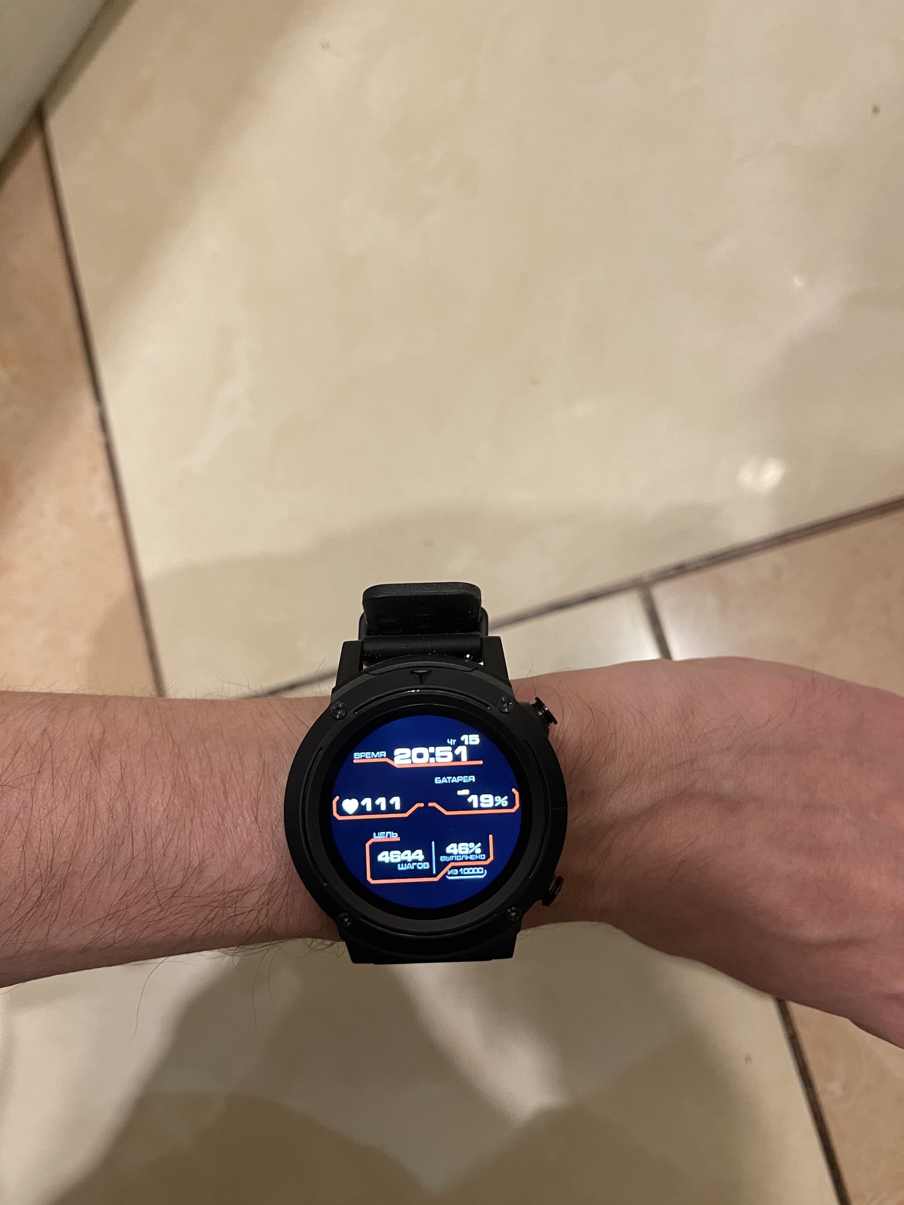 В целом, часы весьма эффектно выглядят на мужской руке, и даже экран не кажется слишком маленьким. А главный минус — даже не запутанная функциональность кнопок и доминирование пластика, а отсутствие полноценной влагозащиты типа 5 атм, которая уже давно стала для подобных устройств стандартом де факто. Здесь же только IP68, что не позволяет свободно плавать в часах, хотя такой режим среди тренировок есть.