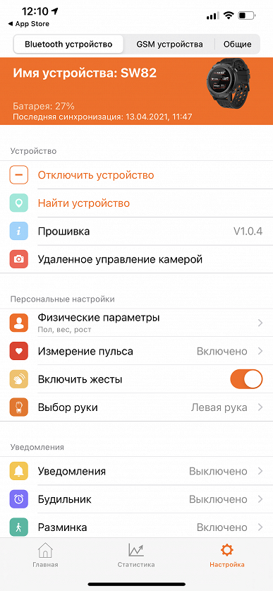 Интерфейс приложения сделан не очень рационально. Даже после того, как вы привязали к нему часы, там остается вкладка «GSM устройства», которая в данном случае совершенно лишняя. А всё, что действительно полезно пользователю часов, располагается на вкладке «Bluetooth устройство».