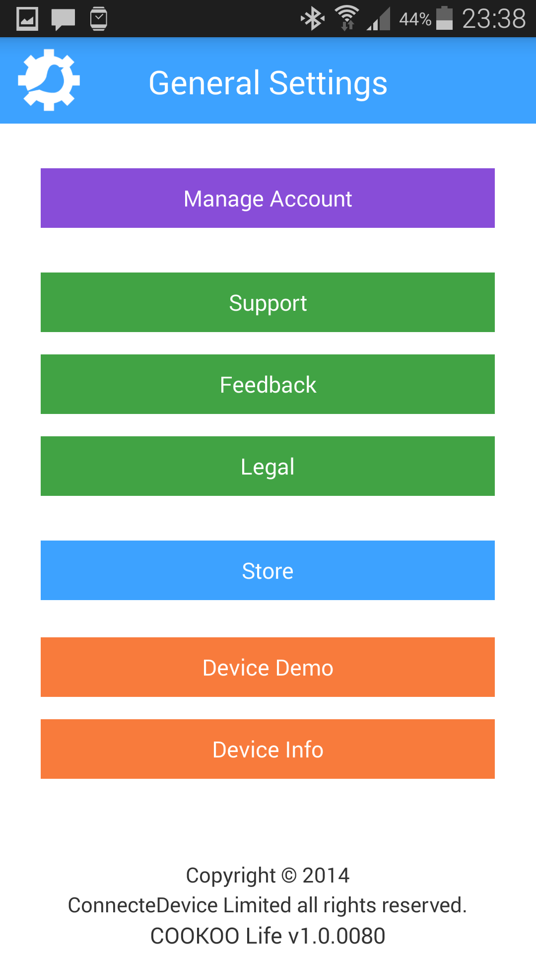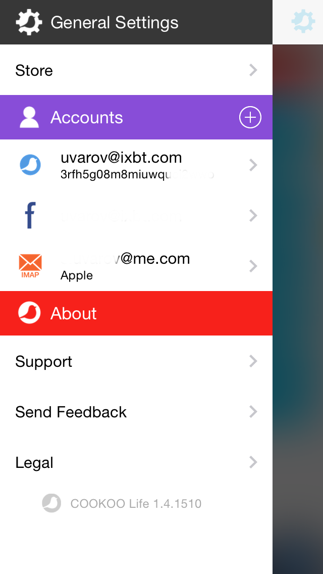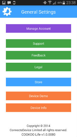 Часы Cookoo вполне можно использовать и просто как часы, безо всякого смартфона. Стрелки ходят и сами по себе :) Но если вы все-таки хотите получить «умную» функциональность, придется установить приложение Cookoo Life на смартфон. Приложение предлагает создать аккаунт в сервисе ConnecteDevice. Причем, это тоже обязательный шаг. После регистрации можно добавить другие сервисы — почту, Facebook и Twitter.