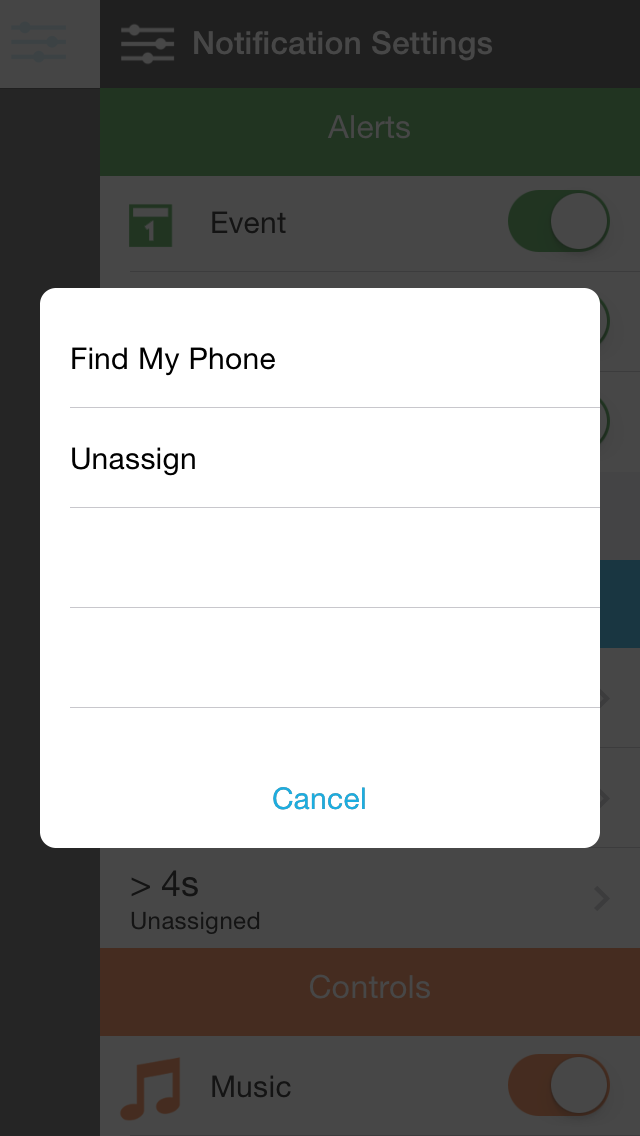 Под уведомлениями с «рычажками» располагается меню, теоретически, позволяющее настроить действия на разную продолжительность нажатия синей кнопки. Однако, нам так и не удалось это сделать. Например, вот что показывается при нажатии на строчку «2 — 4s». Только две опции, первая из которых уже используется при нажитии от 0 до 2 секунд, а вторая — «Не назначено». Аналогично и «4 — 6s».