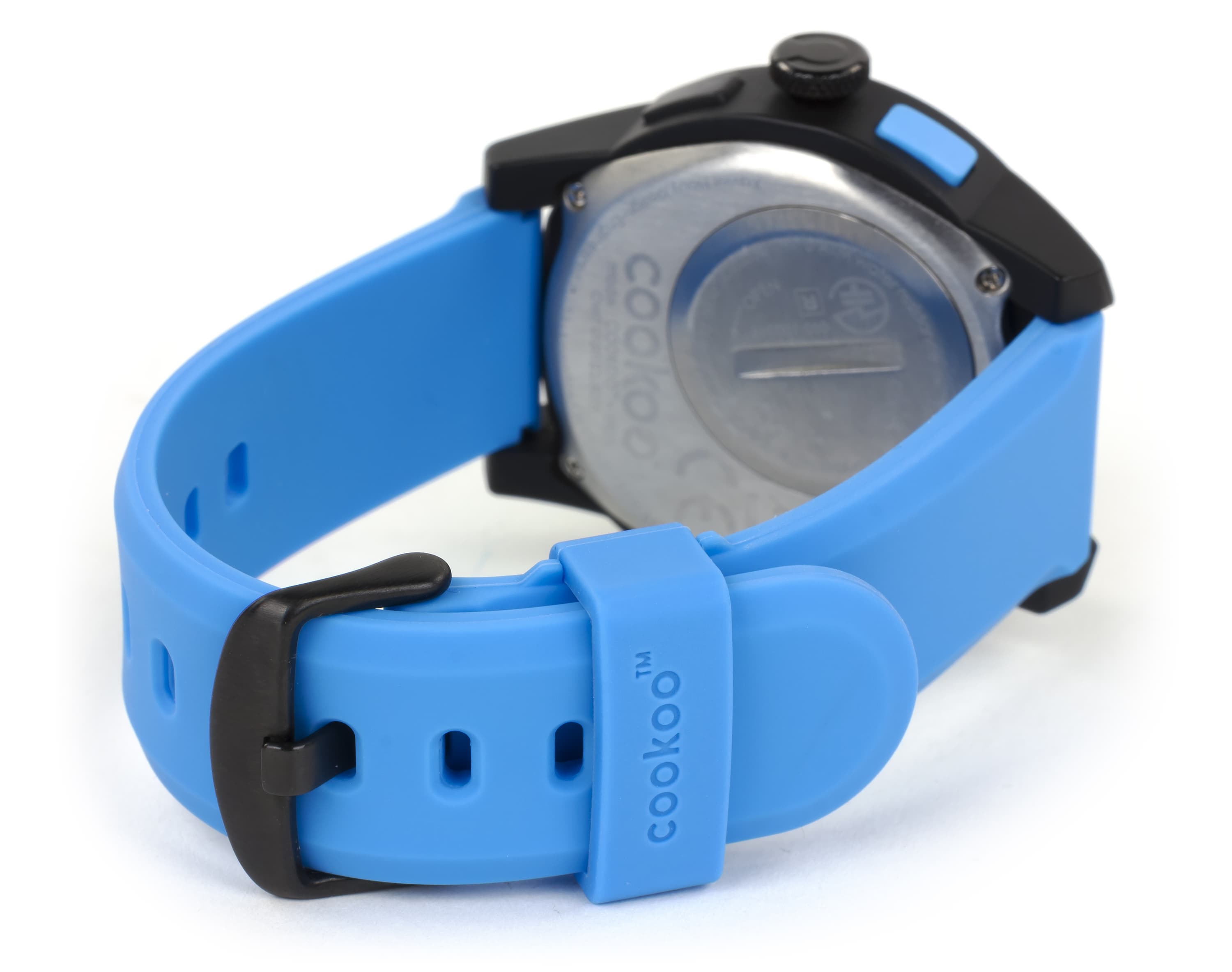 Часы Cookoo выглядят как совершенно типичные наручные часы: со стрелками (да, настоящими физическими стрелками!), кнопочкой-шайбой для подстройки времени, силиконовым ремешком со стандартным креплением.