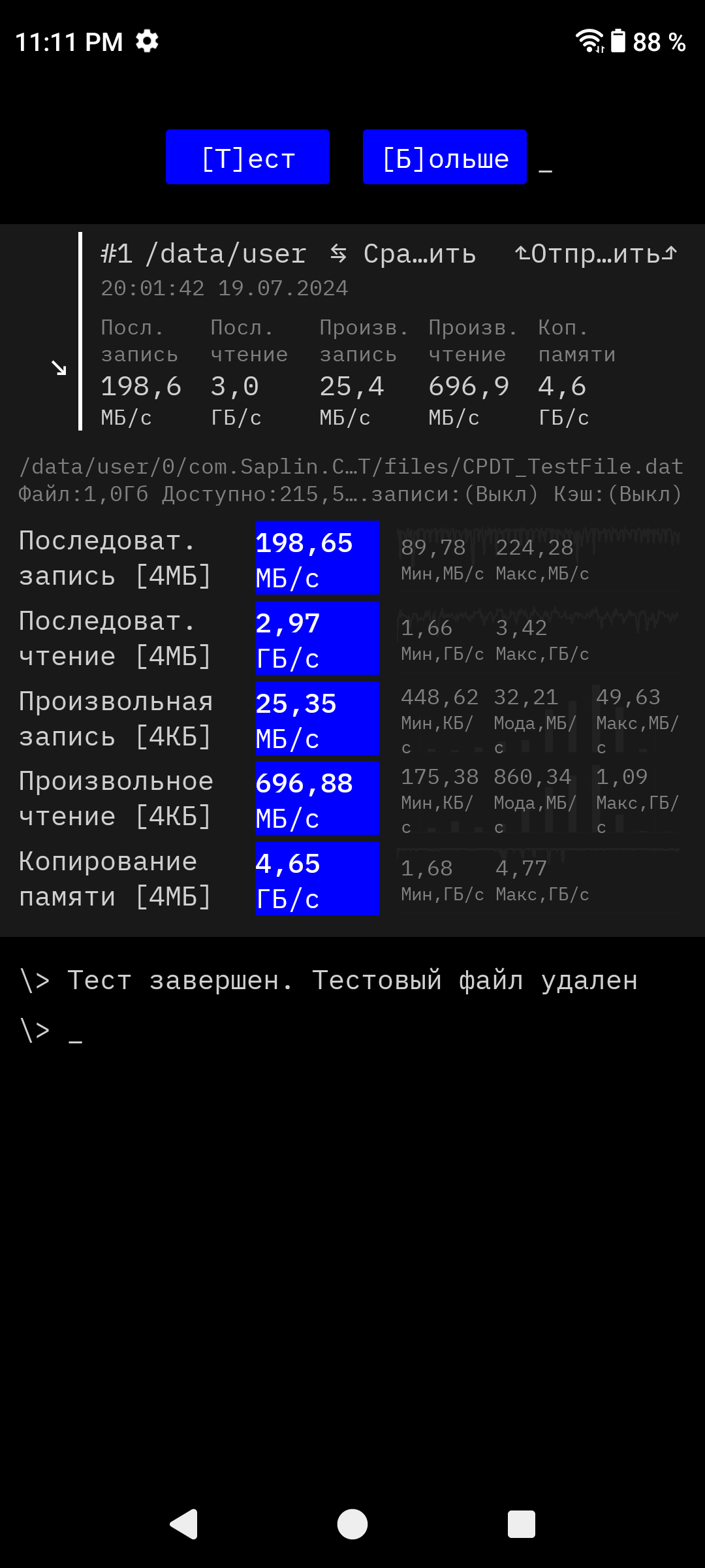 Результаты тестирования скорости памяти: