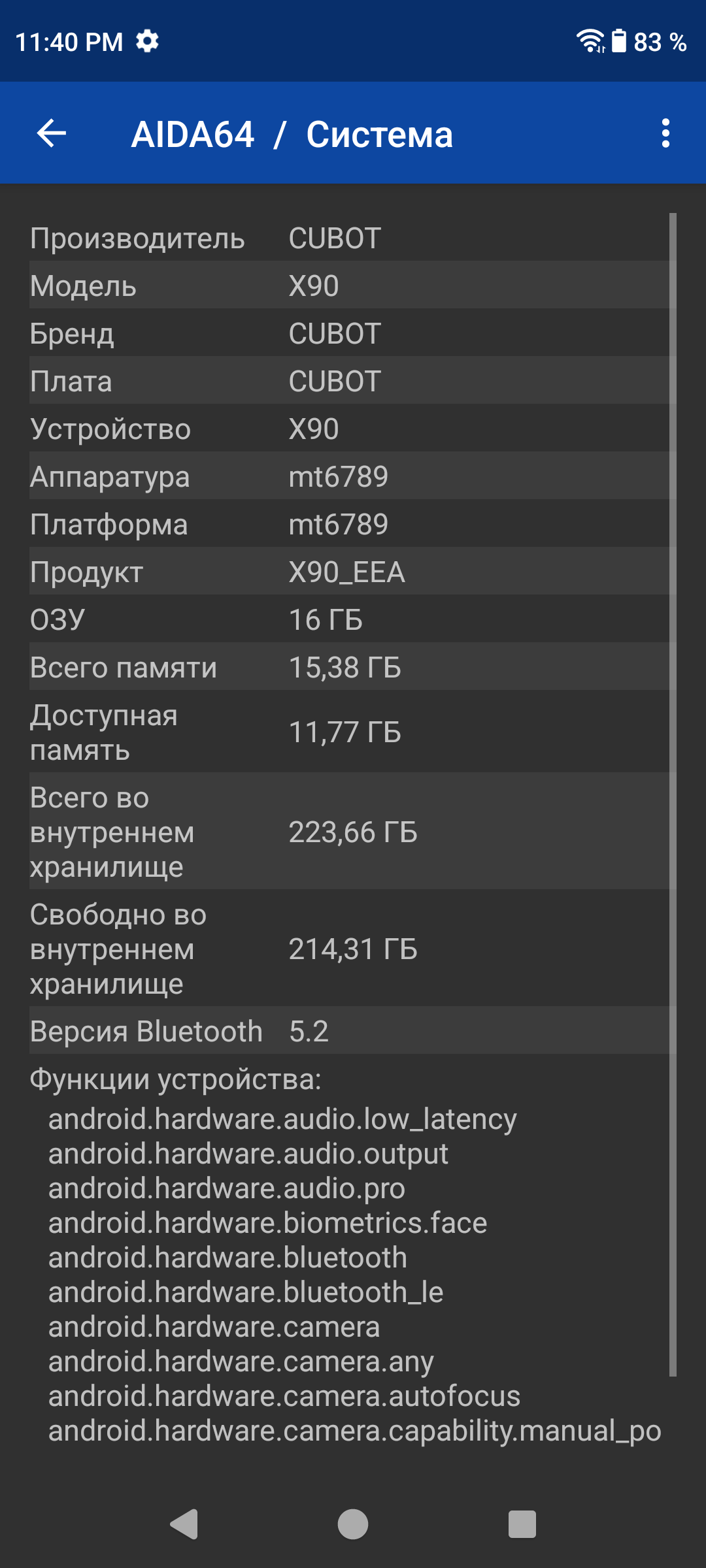 В качестве программной платформы Cubot X90 использует ОС Android 14, по виду практически чистую версию, хотя без пресловутой «убивалки всего живого фоновых процессов» DuraSpeed не обошлось. Всплывающей рекламы нет, замусоренности предустановленными программами тоже нет, интерфейс быстрый. Имеется полная поддержка сервисов Google.