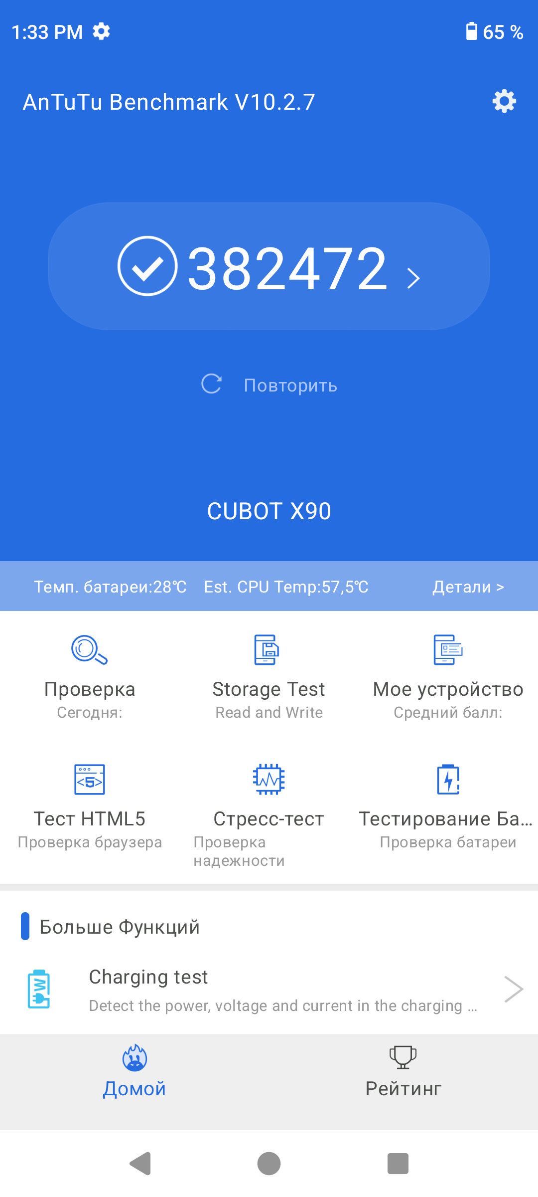 Тестирование в комплексных тестах AnTuTu и GeekBench: