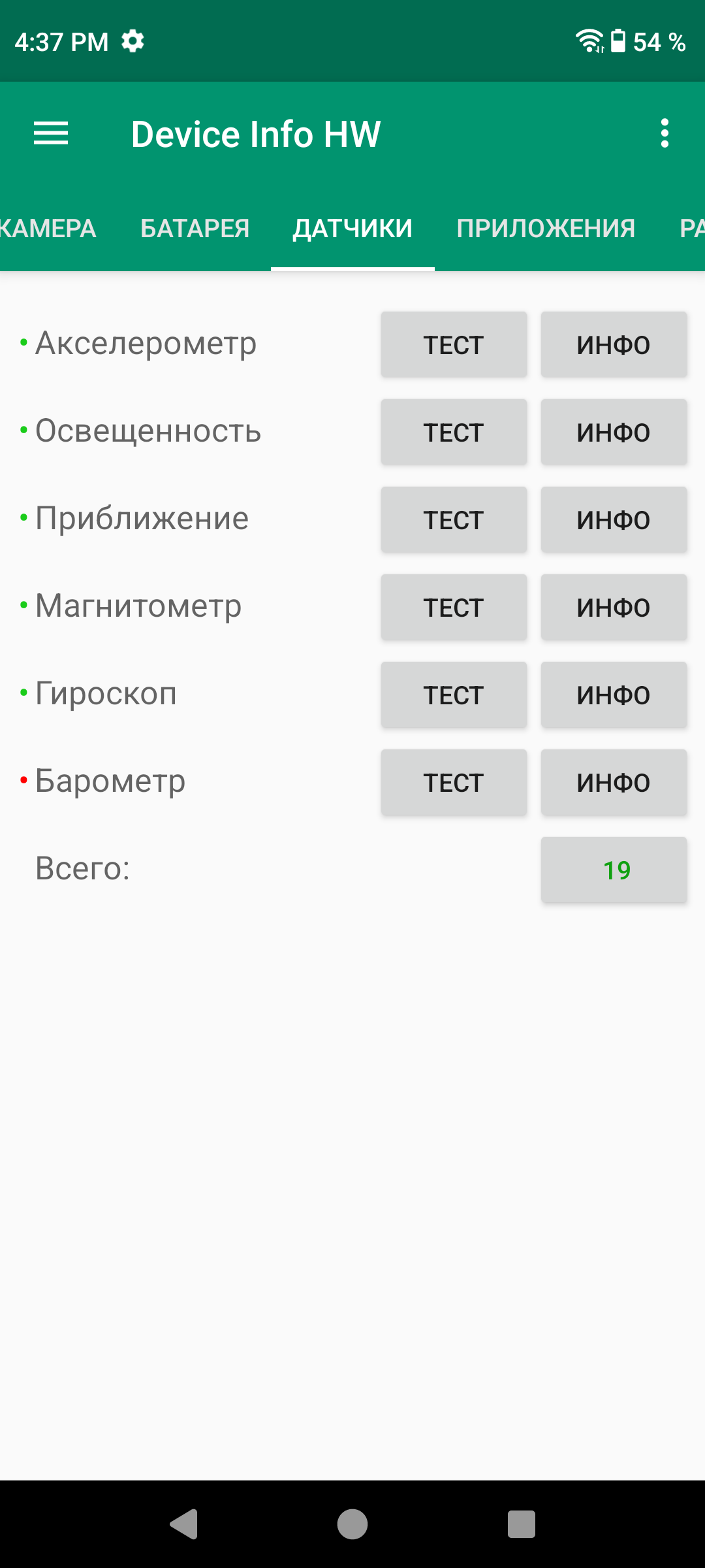 - Датчики приближения и освещения, магнитного поля, акселерометр, гироскоп