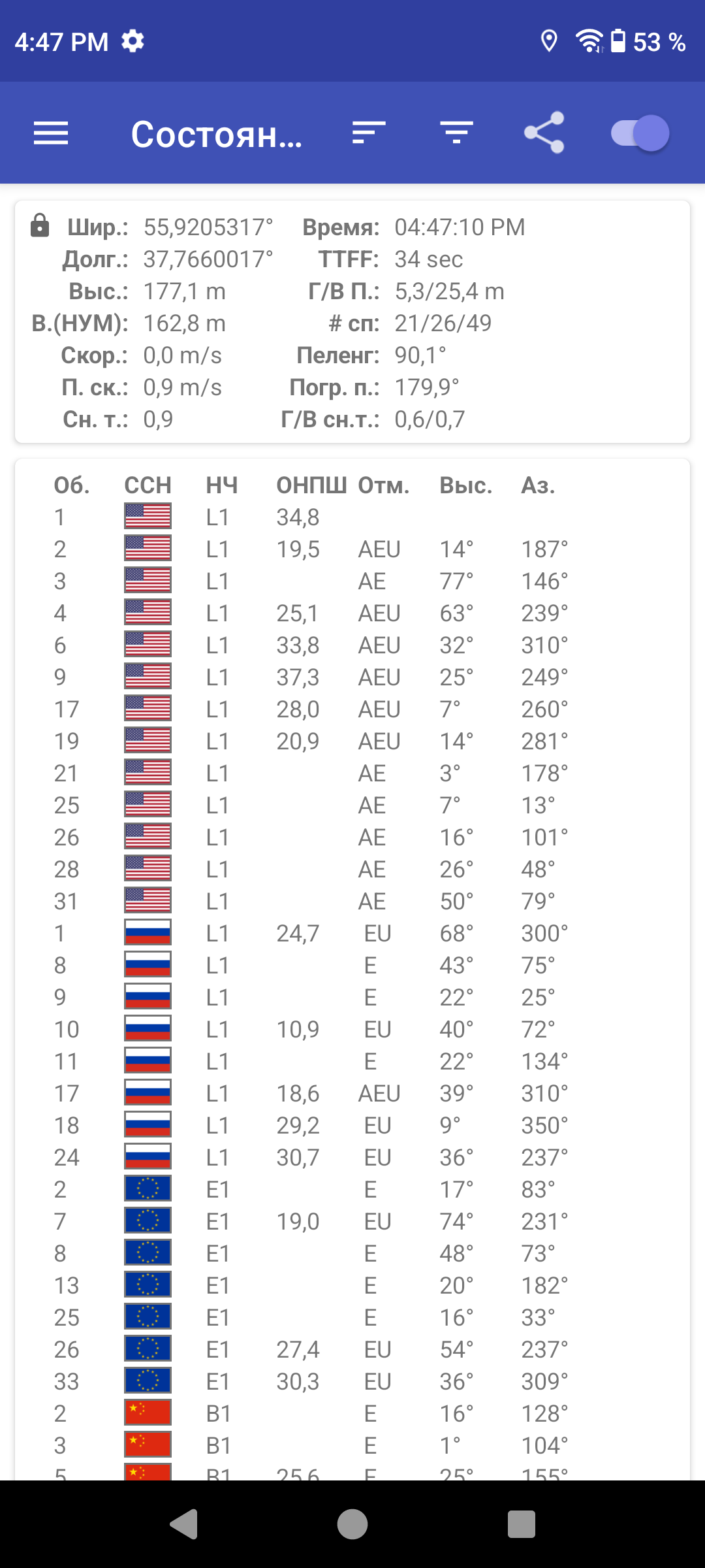 - GPS, Глонасс, BDS, Galileo