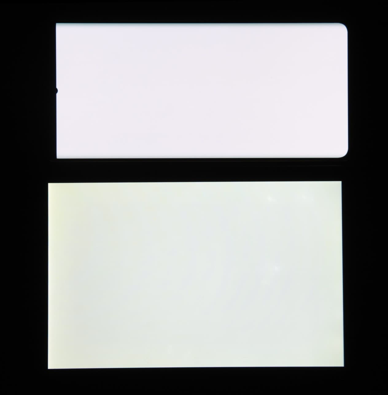 Экран характеризуется великолепными углами обзора. Яркость под углом у обоих экранов заметно уменьшается (если сравнивать с Nexus 7), но в случае смартфона падение яркости выражено гораздо меньше. В итоге, даже если установить формально одинаковую яркость, то экран этого смартфона визуально выглядит гораздо более ярким (в сравнении с ЖК-экранами), так как на экран мобильного устройства часто приходится смотреть как минимум под небольшим углом. Правда, у смартфона белый цвет при отклонении на очень большие углы приобретает слабый сине-зеленый оттенок, но черный цвет остается просто черным под любыми углами. Он настолько черный, что параметр контрастности в данном случае неприменим. Для сравнения приведем фотографии, на которых на экраны смартфона и второго участника сравнения выведены одинаковые изображения, при этом яркость экранов изначально установлена примерно на 200 кд/м², а цветовой баланс на фотоаппарате принудительно переключен на 6500 К.