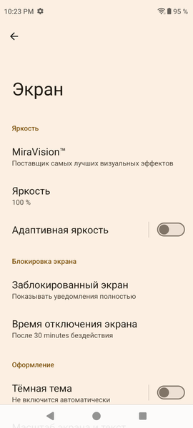При ручном управлении яркостью и при выводе белого поля во весь экран максимальное значение яркости составило примерно 315 кд/м². Максимальная яркость невысокая. В итоге, даже учитывая отличные антибликовые свойства, читаемость днем на солнце не будет хорошей. Минимальное значение яркости при ручном управлении — 3 кд/м², то есть пониженный уровень яркости без проблем позволяет использовать устройство даже в полной темноте. Есть автоматическая регулировка яркости по датчику освещенности (он расположен на верхнем торце — спорное место). В автоматическом режиме при изменении внешних условий освещенности яркость экрана как повышается, так и понижается. Работа этой функции зависит от положения ползунка регулировки яркости: им пользователь может попытаться выставить желаемый уровень яркости в текущих условиях. Если оставить все по умолчанию, то в полной темноте функция автояркости уменьшает яркость до 5 кд/м² (очень темно), в условиях освещенного искусственным светом офиса (примерно 550 лк) устанавливает на 90 кд/м² (нормально), в очень ярком окружении (условно соответствует нахождению на прямом солнечном свету) повышает до 315 кд/м² (до максимума, так и нужно). Результат нас не совсем устроил, поэтому мы в полной темноте чуть увеличили яркость, получив для трех условий, указанных выше, следующие значения: 15, 90 и 315 кд/м² (что и было нужно). Получается, что функция автоподстройки яркости работает адекватно и в какой-то степени позволяет пользователю настраивать свою работу под индивидуальные требования.