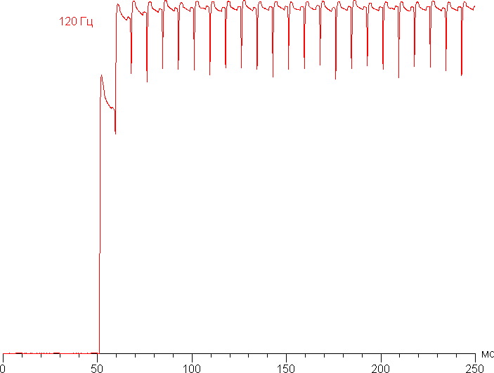 В режиме 120 Гц плавность прокрутки заметно повышается (а при 60 Гц прокрутка уж слишком дерганая, визуально соответствует частоте не более 30 Гц). Характер модуляции при этом не меняется.