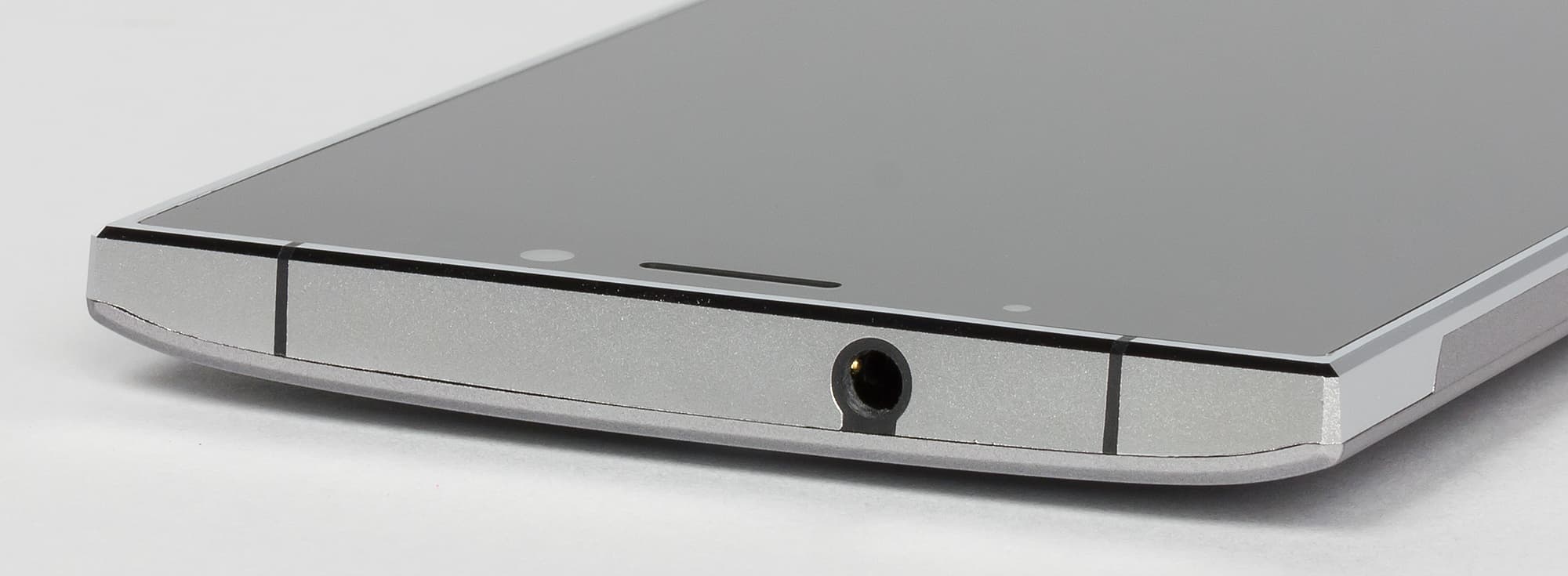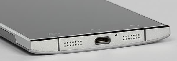 Разъемы разместились по двум торцам. Сверху расположено гнездо аудиовыхода на наушники (3,5 мм), а снизу — универсальный разъем Micro-USB. Острые края выреза в металлической рамке вокруг разъема Micro-USB прикрыты пластиковой вставкой, смартфон поддерживает подключение внешних устройств к порту USB в режиме OTG.