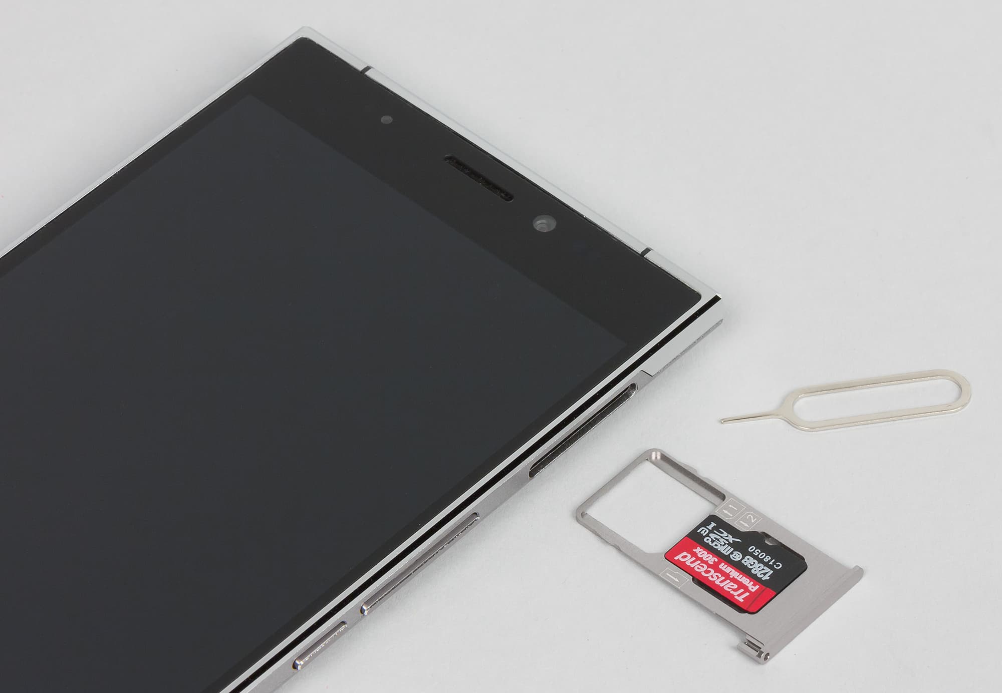 Неразборный корпус Doogee F5 не имеет съемных крышек, карточки здесь устанавливаются в единственный боковой слот, содержащий сдвоенные металлические салазки, на которые можно уложить одну карту Nano-SIM и одну карту Micro-SIM. Для карты памяти отдельного места в смартфоне не нашлось, поэтому ее можно установить, только изъяв одну из SIM-карт.