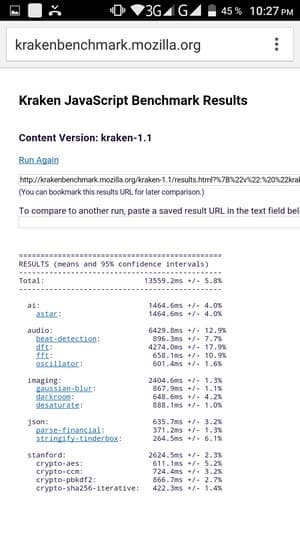 Что касается бенчмарков для оценки скорости движка javascript, то стоит всегда делать скидку на то, что в них результаты существенно зависят от браузера, в котором запускаются, так что сравнение может быть истинно корректным только на одинаковых ОС и браузерах, а такая возможность имеется при тестировании не всегда. В случае с ОС Android мы всегда стараемся использовать Google Chrome.