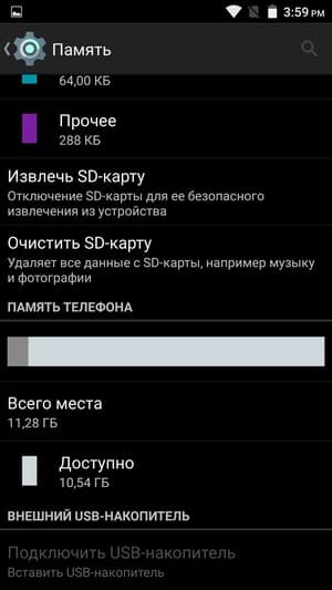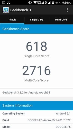Аппаратная платформа Doogee F5 строится на базе уже знакомой восьмиядерной однокристальной системы (SoC) MediaTek MT6753. Это более слабая платформа в сравнении с MT6752, рабочая частота ее ядер CPU урезана, а также используется менее производительный видеоускоритель. В конфигурацию данной SoC входят все те же восемь процессорных ядер Cortex-A53, но работают они на частоте до 1,3 ГГц. За обработку графики здесь отвечает видеоускоритель Mali-T720. Объем ОЗУ составляет 3 ГБ, а собственной памяти для нужд пользователя в устройстве изначально доступно около 11 ГБ из общего объема 16 ГБ. Есть возможность подключения карт microSD, но тогда придется вынуть вторую SIM-карту. На практике наша проверочная карта Transcend Premium microSDXC UHS-1 объемом 128 ГБ уверенно распозналась устройством. Также поддерживается подключение внешних устройств в режиме USB OTG.