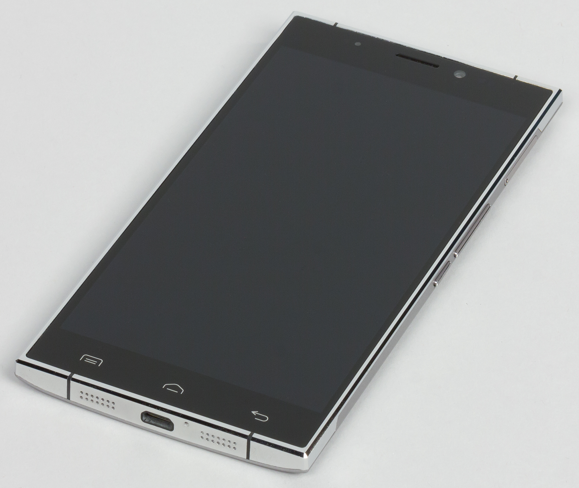 Но с другой стороны, разработчики в стремлении создать неизбитый вариант дизайна для нового смартфона решили отойти от привычных форм с плавными изгибами и закругленными в плане углами. Doogee F5 получил прямые формы с острыми кромками и грубыми рублеными чертами вовсе без закруглений. Учитывая, что металл — штука твердая, эти острые торчащие углы играют плохую роль: с ними аппарат и места больше занимает, и весьма неприятно врезается в тело, находясь в карманах одежды. Наверняка, создавая скругленные углы и обтекаемые формы, разработчики современных смартфонов думали не только о красоте, но еще и о практической стороне вопроса, которая в данном случае сильно пострадала.