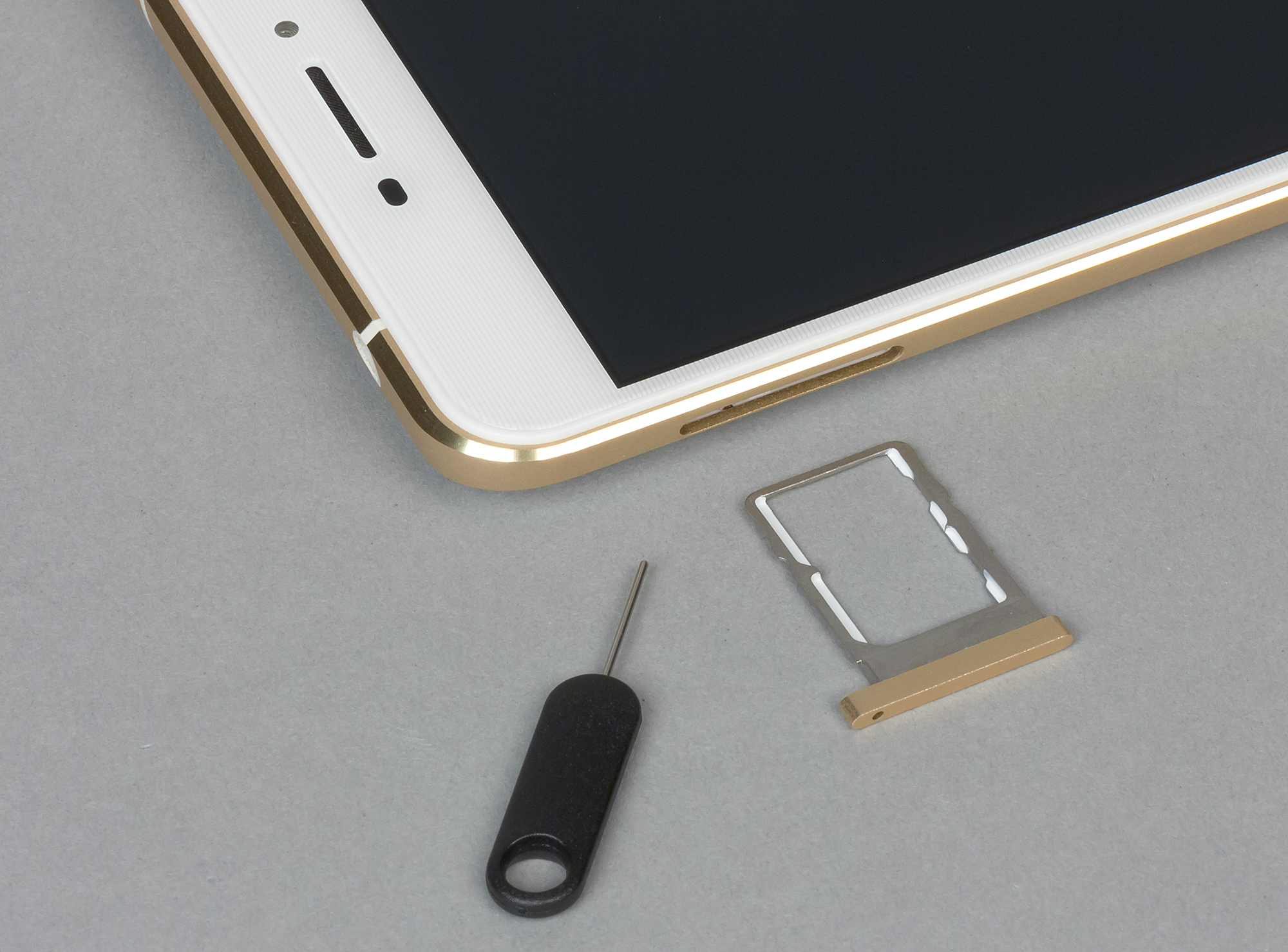 Разъем для карточек расположен на левой грани, в нем скрываются два слота для карт формата Nano-SIM, а вот для карт памяти формата microSD места не нашлось вовсе, данный разъем не гибридный. Горячая замена карт поддерживается.