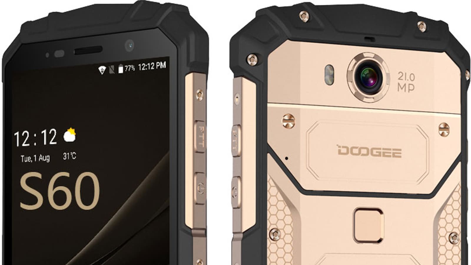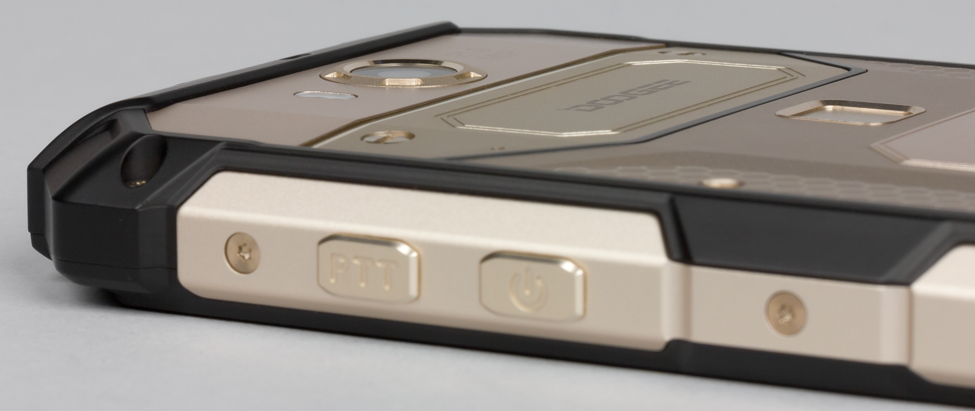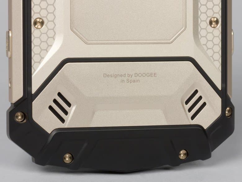 Doogee S60 представлен в продаже в трех цветовых решениях, что само по себе похвально, учитывая, что речь идет о весьма необычном и сложном по строению корпусе с защитными функциями. Используются черный (Mineral Black), золотистый (Sunset Gold) и серебристый (Moonlight Silver) цвета металлических частей, в то время как прорезиненный пластик в накладках всегда остается черного цвета.