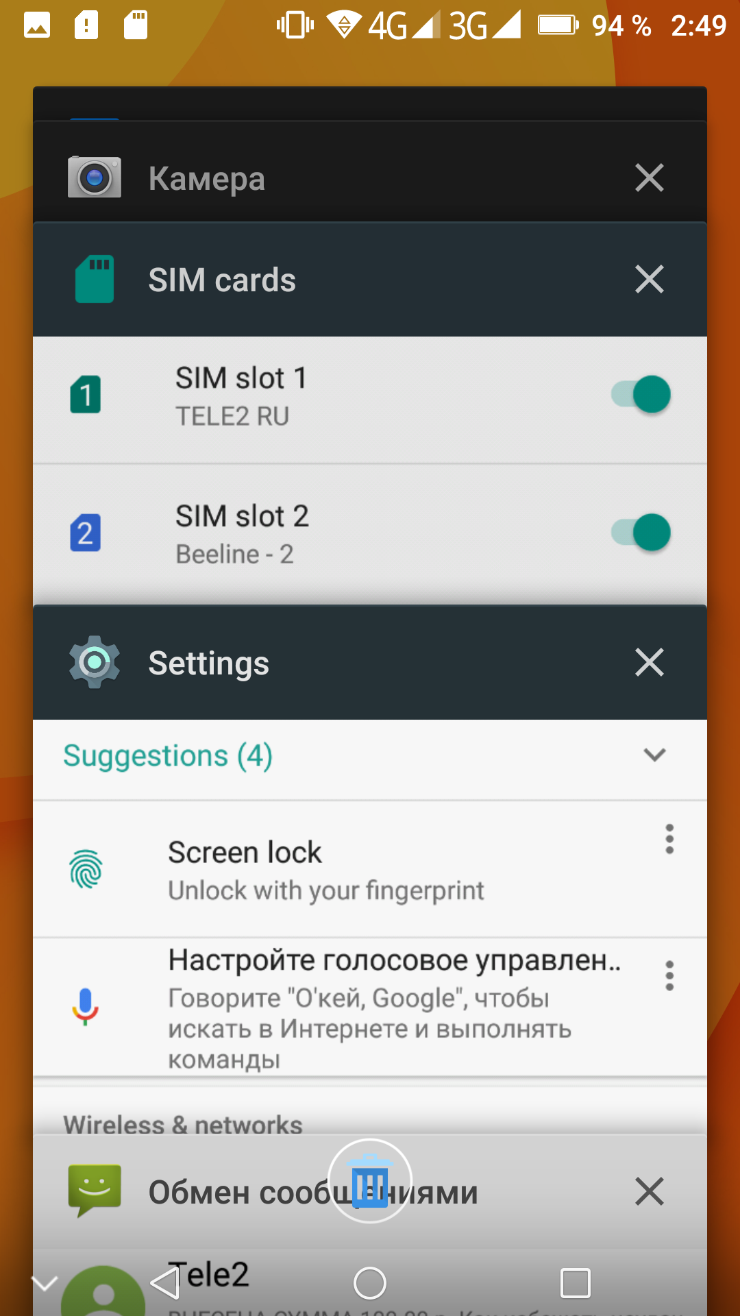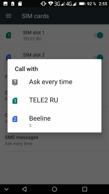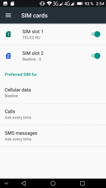 Смартфон умеет поддерживать в режиме активного ожидания обе SIM-карты в 3G/4G одновременно. То есть вторая SIM-карта будет работать в ожидании в 3G для голосовой связи, даже если для передачи данных в 4G назначена карта из первого слота. Интерфейс позволяет выбрать для голосовых звонков и SMS определенную SIM-карту заранее. Работают карты в режиме Dual SIM Dual Standby, радиомодем здесь один.