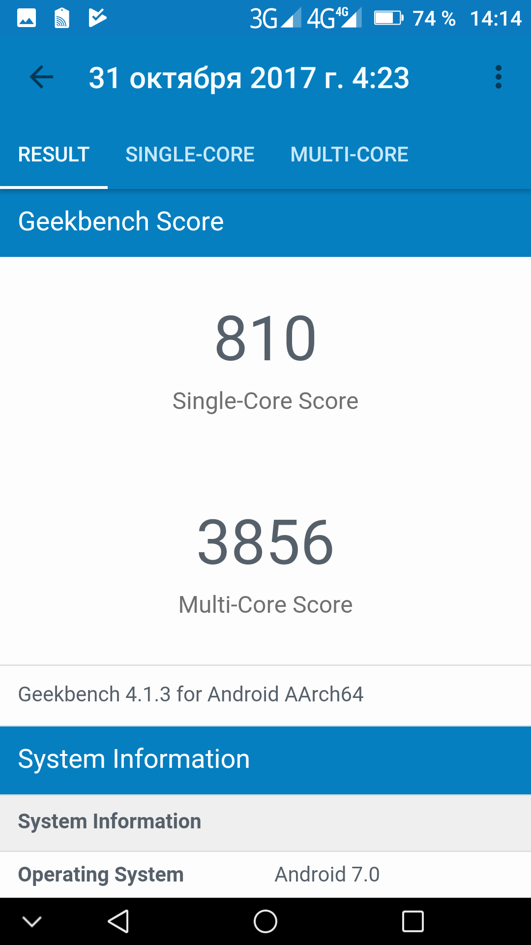 | GeekBench (v4.x) (больше — лучше) | 810/3856 | 873/4014 | 757/2071 | 904/3513 | 620/1942 |