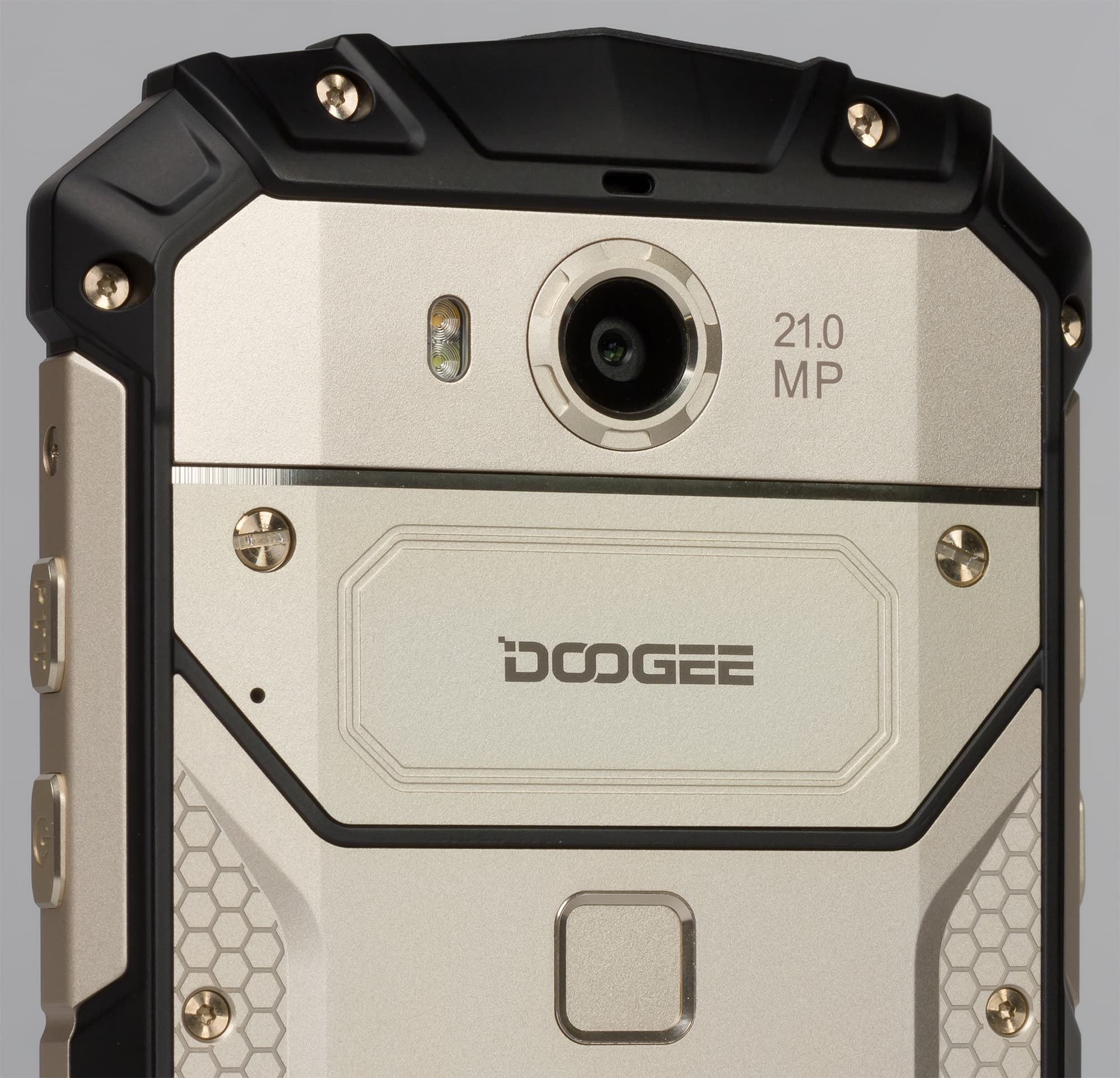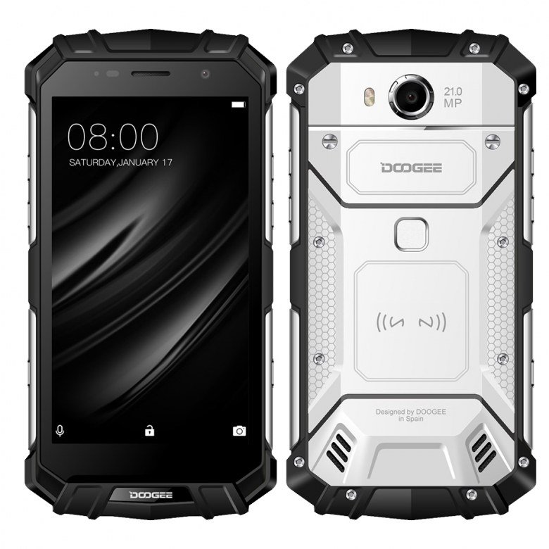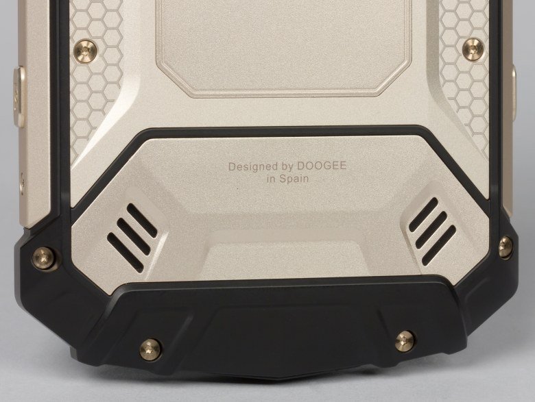 Doogee S60 выполнен в привычном для такого рода изделий дизайне и форм-факторе: это крупный моноблок, заключенный в массивный кожух из металла и прорезиненного пластика. Многочисленные металлические и пластиковые детали перемежаются так часто, что трудно определенно сказать, пластиковый ли это корпус с металлическими накладками или же металлический корпус с накладками из пластмассы.