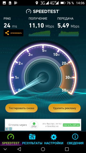 Навигационный модуль работает и с GPS (с A-GPS), и с отечественной Глонасс, но без поддержки китайской Beidou. Первые спутники при холодном старте обнаруживаются быстро, в течение первых же секунд. К точности позиционирования претензий нет никаких. Магнитный компас, необходимый для работы навигационных программ, в аппарате имеется.
