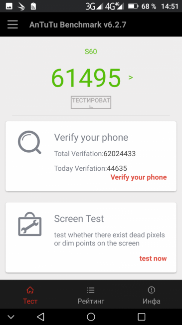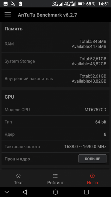 | AnTuTu (v6.x) (больше — лучше) | 61495 | 63361 | 50597 | 60485 | 42896 |