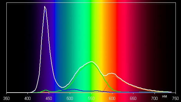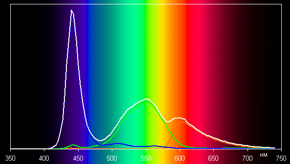 Спектры показывают, что светофильтры матрицы в умеренной степени подмешивают компоненты друг к другу: