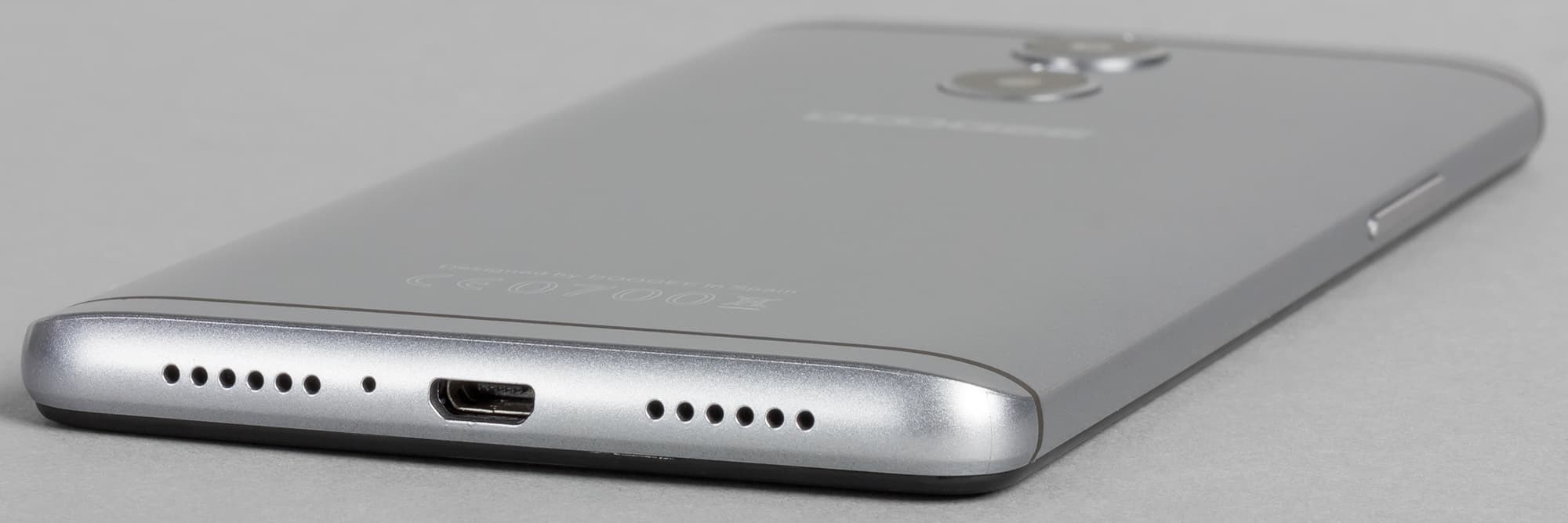 Основной динамик выведен в нижний торец, проделанные там два симметричные ряда мелких круглых отверстий смотрятся неплохо, но для выхода звука, естественно, используется лишь один из них. Посередине между ними размещен разъем Micro-USB, поддерживающий подключение внешних устройств в режиме USB OTG.