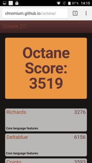 | Google Octane 2 (больше — лучше) | 3519 | 3343 | 3994 | 3146 | 4542 |