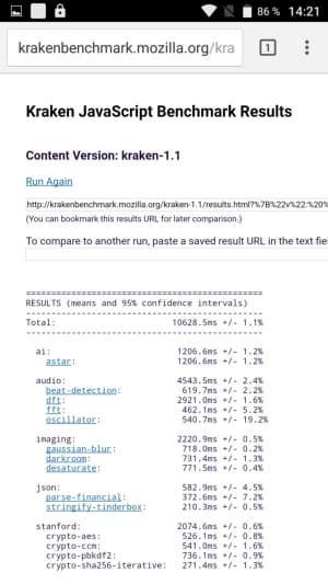 Что касается бенчмарков для оценки скорости движка javascript, то стоит всегда делать скидку на то, что в них результаты существенно зависят от браузера, в котором запускаются, так что сравнение может быть истинно корректным только на одинаковых ОС и браузерах, а такая возможность имеется при тестировании не всегда. В случае с ОС Android мы всегда стараемся использовать Google Chrome.