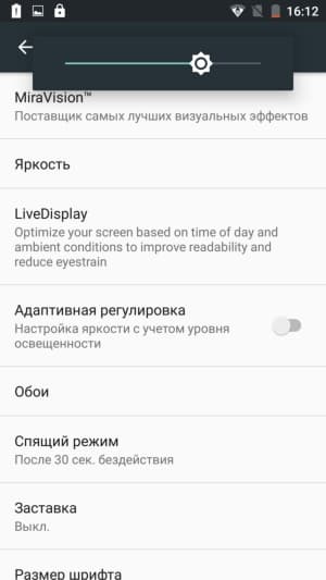 Яркость дисплея можно подстраивать вручную или задавать автоматические настройки, основанные на работе датчика внешнего освещения. Тест AnTuTu диагностирует поддержку 5 одновременных касаний мультитач. Есть возможность активации экрана двойным постукиванием по стеклу.