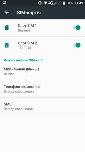 Платформа смартфона не поддерживает работу с двумя SIM-картами в 3G/4G одновременно, то есть SIM-карты таких операторов, как Tele2, не будут работать в 3G на голосовую связь, если под передачу данных в 4G назначена карта из другого слота (в 2G карточки Tele2 просто не умеют работать). Интерфейс позволяет выбрать для каждой из функций определенную карту заранее, или это можно сделать непосредственно во время соединения. Работают карты в режиме Dual SIM Dual Standby, радиомодем здесь один.