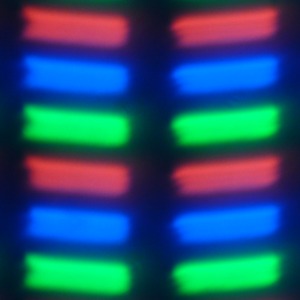 В данном смартфоне используется матрица типа IPS. Микрофотографии, если приглядеться, демонстрируют типичную для IPS структуру субпикселей: