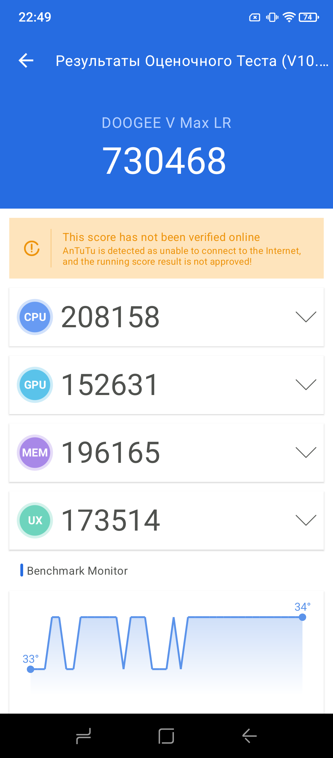 | AnTuTu (v10.x) (больше — лучше) | 730468 | 616568 | 820404 | 792657 | 730514 |