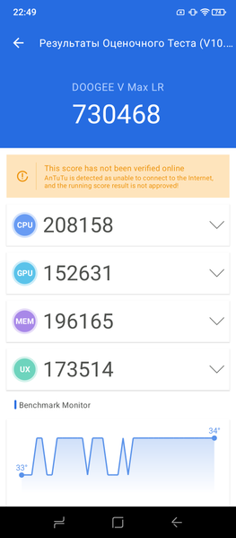 Смартфон Doogee V Max LR имеет встроенную батарею с огромным объемом 20500 мА·ч. Это значительно превышает современный объем аккумулятора стандартного смартфона. Неудивительно, что с такой большой батареей аппарат продемонстрировал в тестах показатели гораздо выше, чем у стандартных смартфонов.