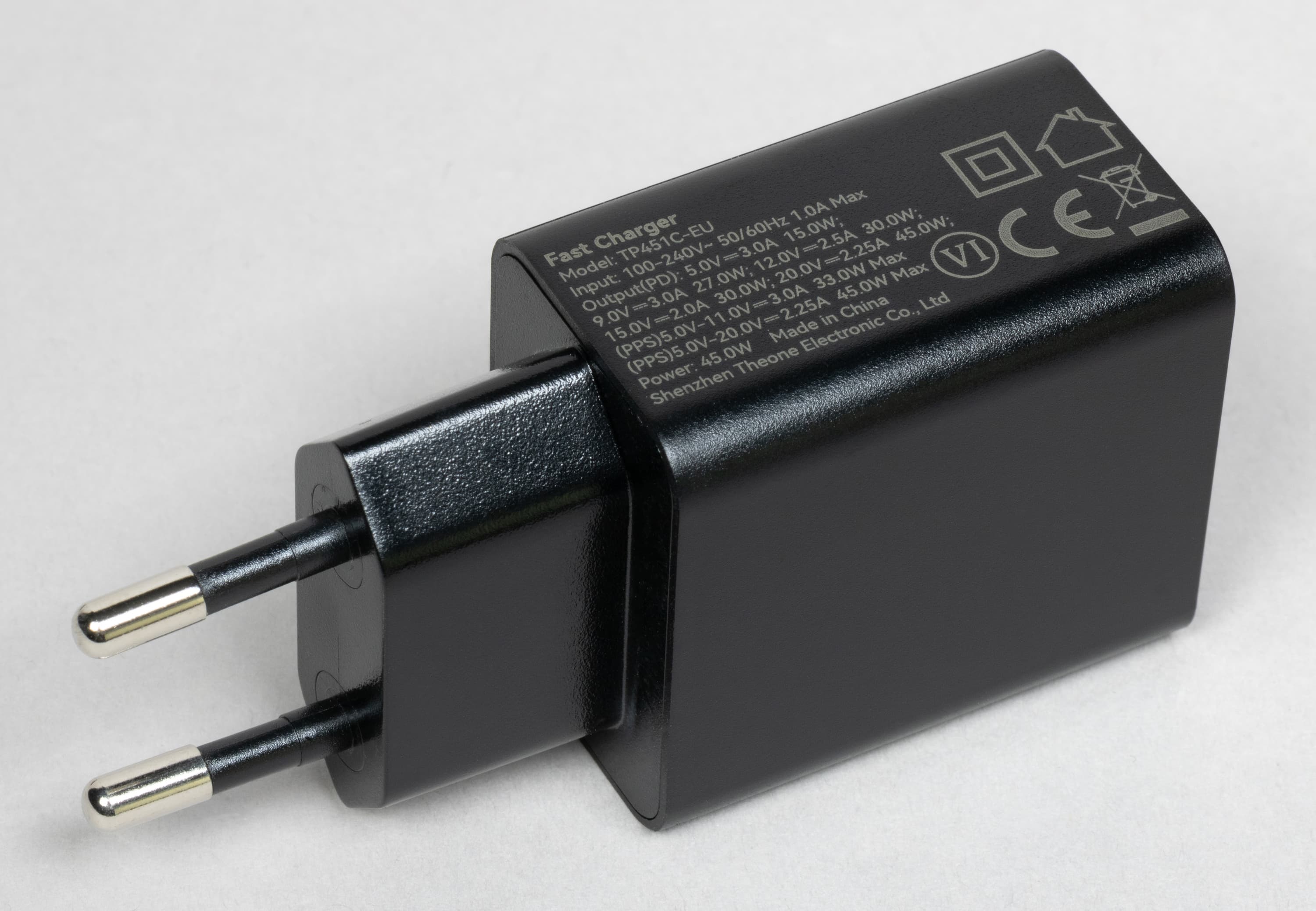 В самом комплекте, впрочем, ничего сверх стандартного не нашлось. Комплект включает сетевой блок питания с максимальной выходной мощностью 45 Вт с разъемом USB-C, соединительный кабель, защитный чехол, защитное стекло для экрана.