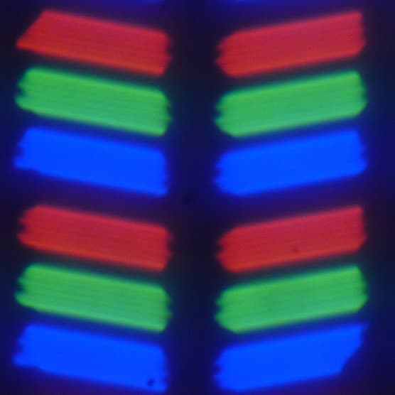 В данном смартфоне используется матрица типа IPS. Микрофотографии демонстрируют типичную для IPS структуру субпикселей: