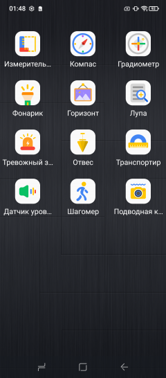 Также есть дополнительные приложения в виде набора программ для путешественника: компас, транспортир, лупа, уровень, отвес, высотомер. И конечно же, особое место занимает редкий гость — лазерный дальномер, с помощью которого можно измерить расстояние или площадь.
