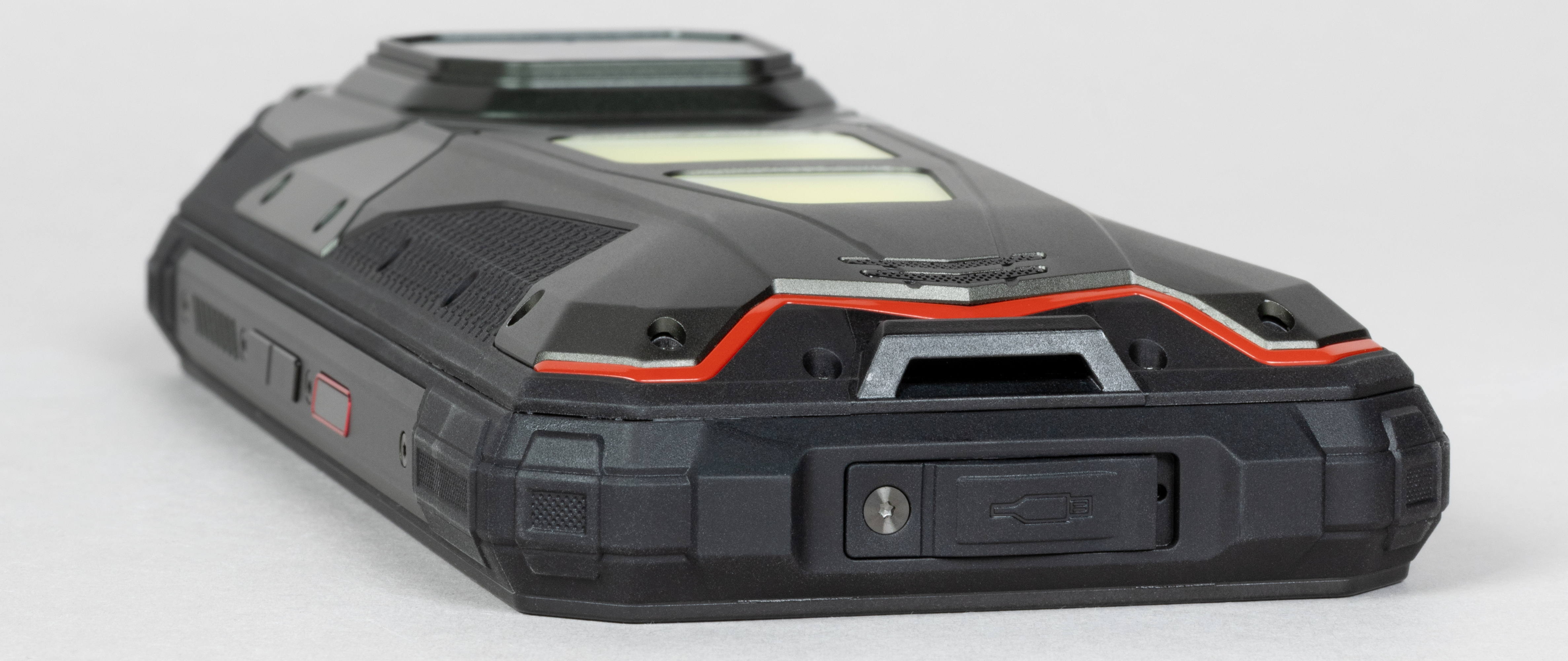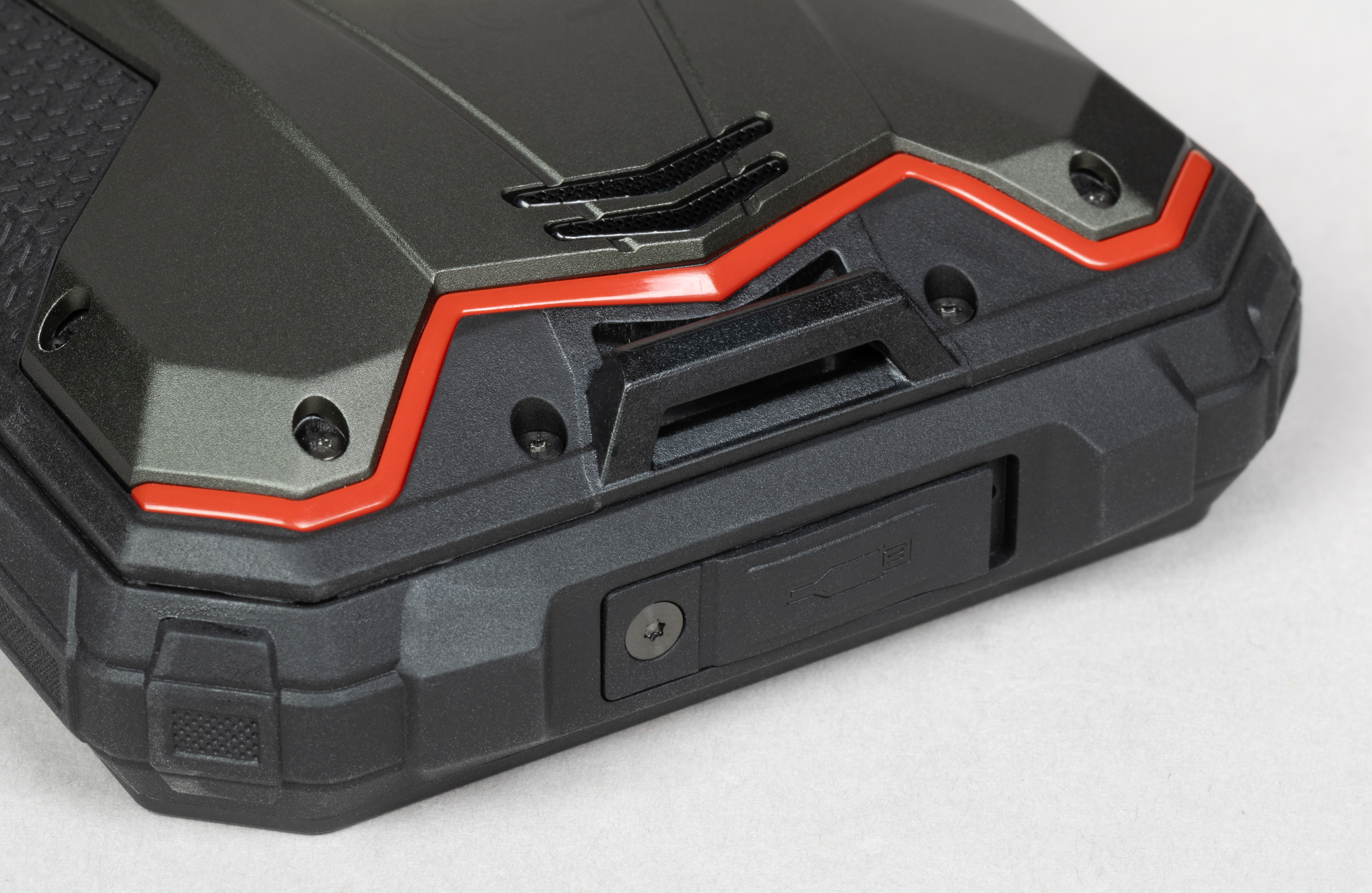 В целом, по дизайну — это типичный защищенный смартфон-внедорожник со всеми внешними атрибутами, такими как ребристые резиновые бока, металлические накладки, прикрученные винтами, резкие переходы и пестрое оформление.